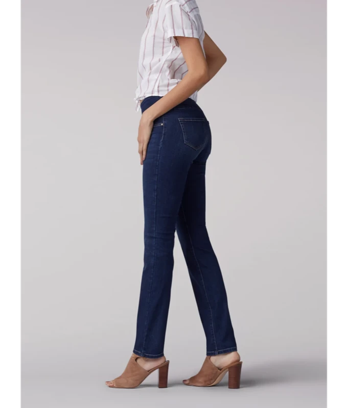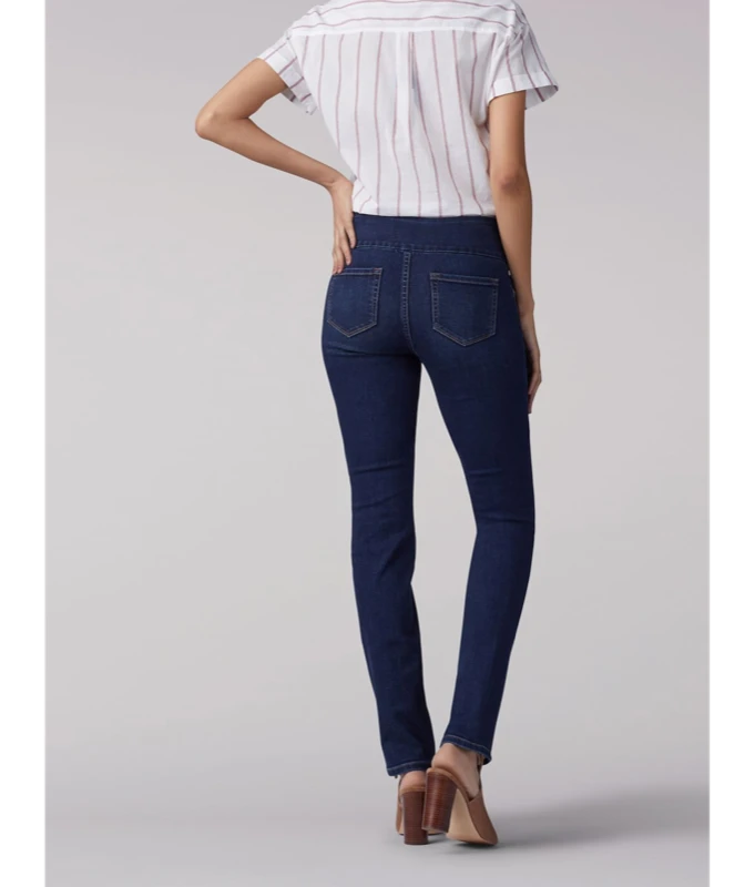 Wear after wear, wash after wash, Lee’s mid rise Sculpting Slim Fit Slim Leg Pull On Jean stretches to hug and enhance your silhouette but always snaps back to its original shape. Innovative fibers made to elongate, slim, and sculpt your legs, hips and backside. Powerful, stretch denim that retains its shape. No bagging. No sagging.