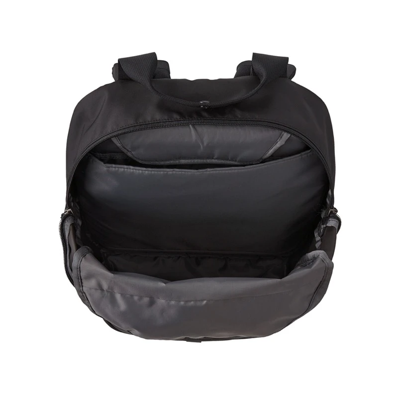 Removable padded sleeve fits laptops up to 13″ and has a secure zippered pocket to hold pens, cords and other desktop items to ease transitions from work to play
