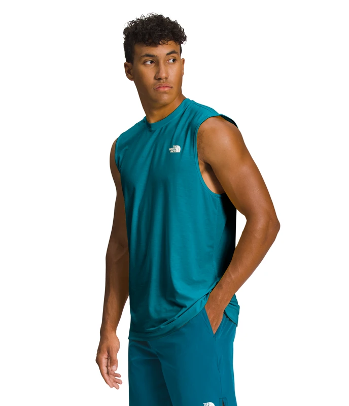 Put simply, warm-weather exploration is better in lightweight, moisture-wicking clothes. The 94% recycled Men’s Wander Sleeveless features moisture-wicking FlashDry™ and 6% elastane for extra stretch.