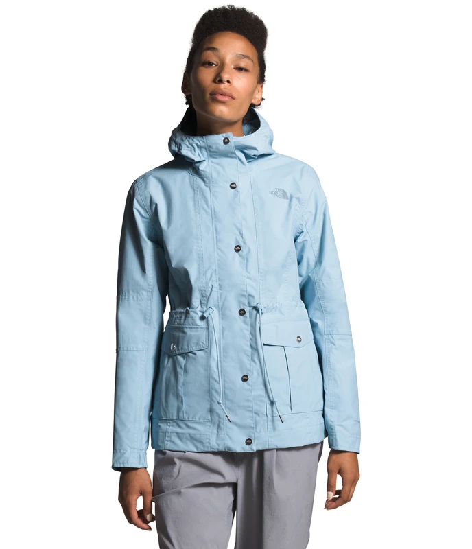 Weatherproof rain jacket with a cinch waist for stylish protection.