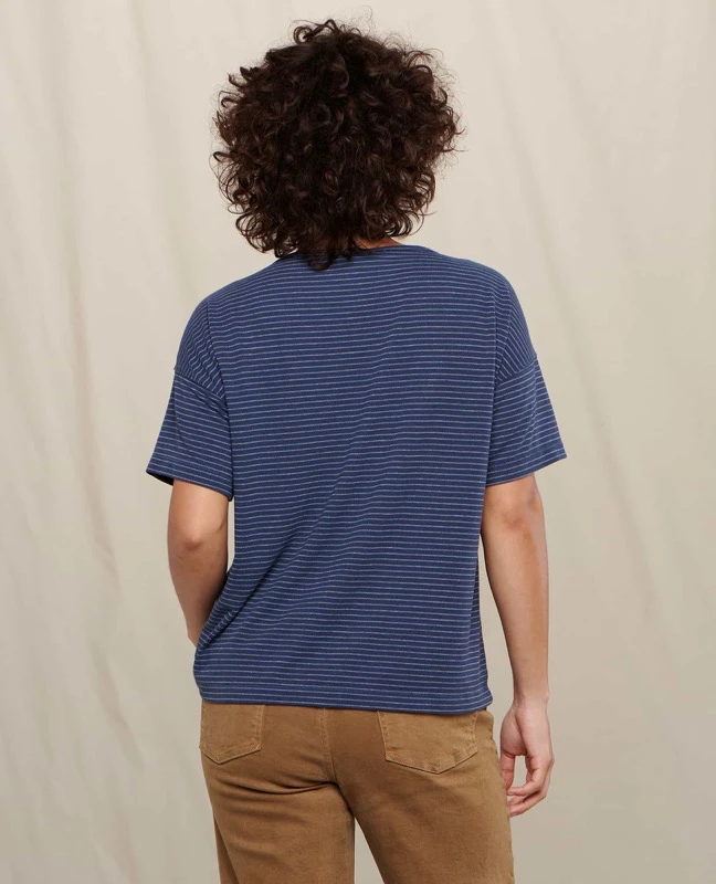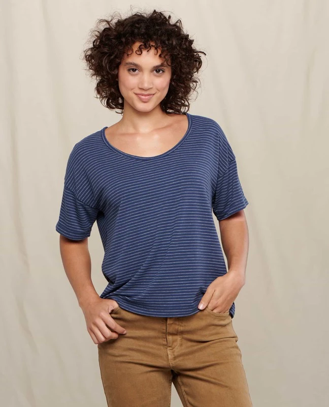 • Fit: Relaxed fit with a slight crop (23” length). A scoop neck and drop shoulder to keep things loose and flowy.